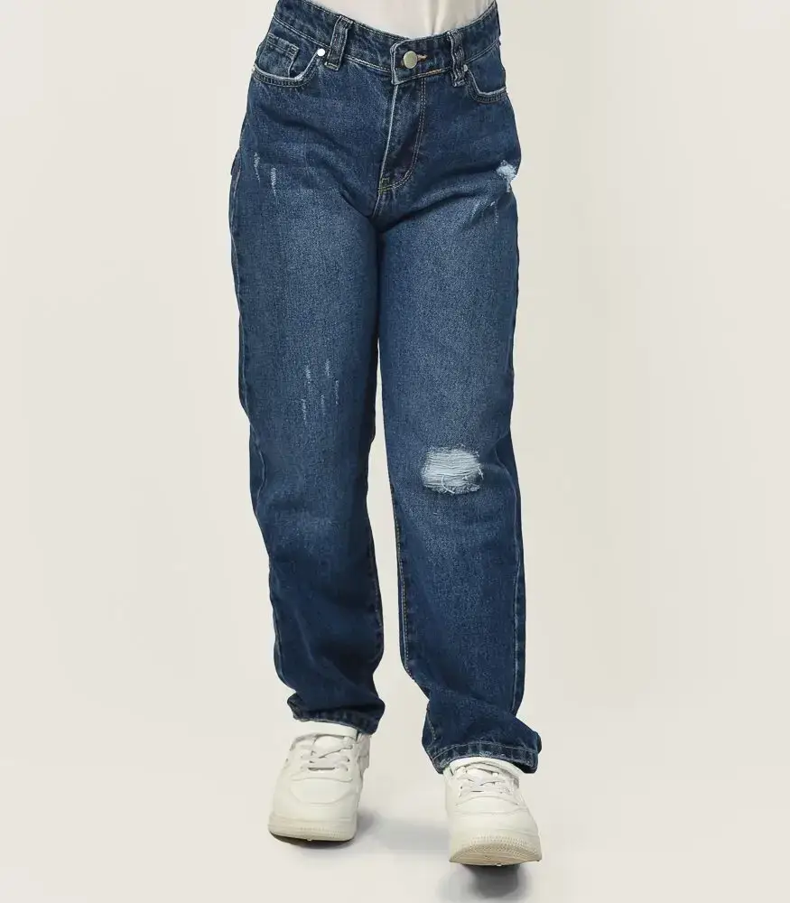بنطلون بناتي جينز بوي فريند أنيق وواسع لراحة أكبر وإطلالة عصرية. مثالي للمدرسة والخروجات اليومية، ويمنح طفلتكِ مظهرًا عمليًا ومميزًا.