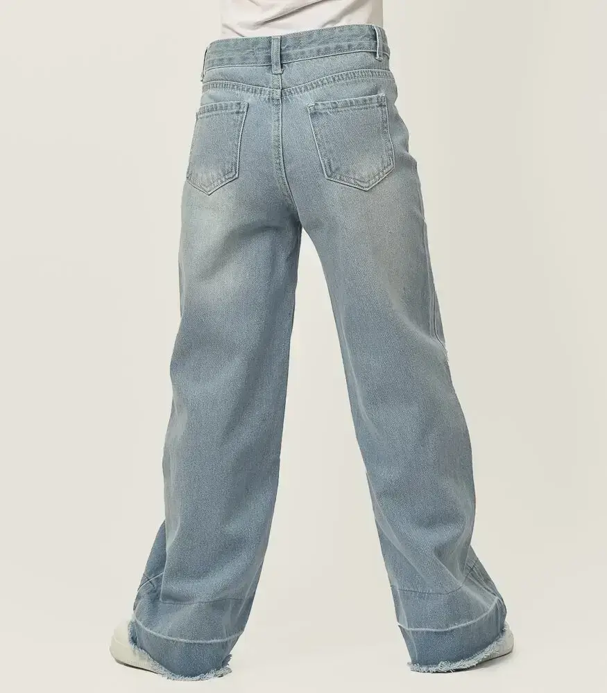 اكتشفي الأناقة مع بنطلون بناتي جينز وايد ليج! تصميم عصري واسع يمنح طفلتك الراحة والمظهر المميز في كل المناسبات. تسوقي الآن لأفضل الخيارات!