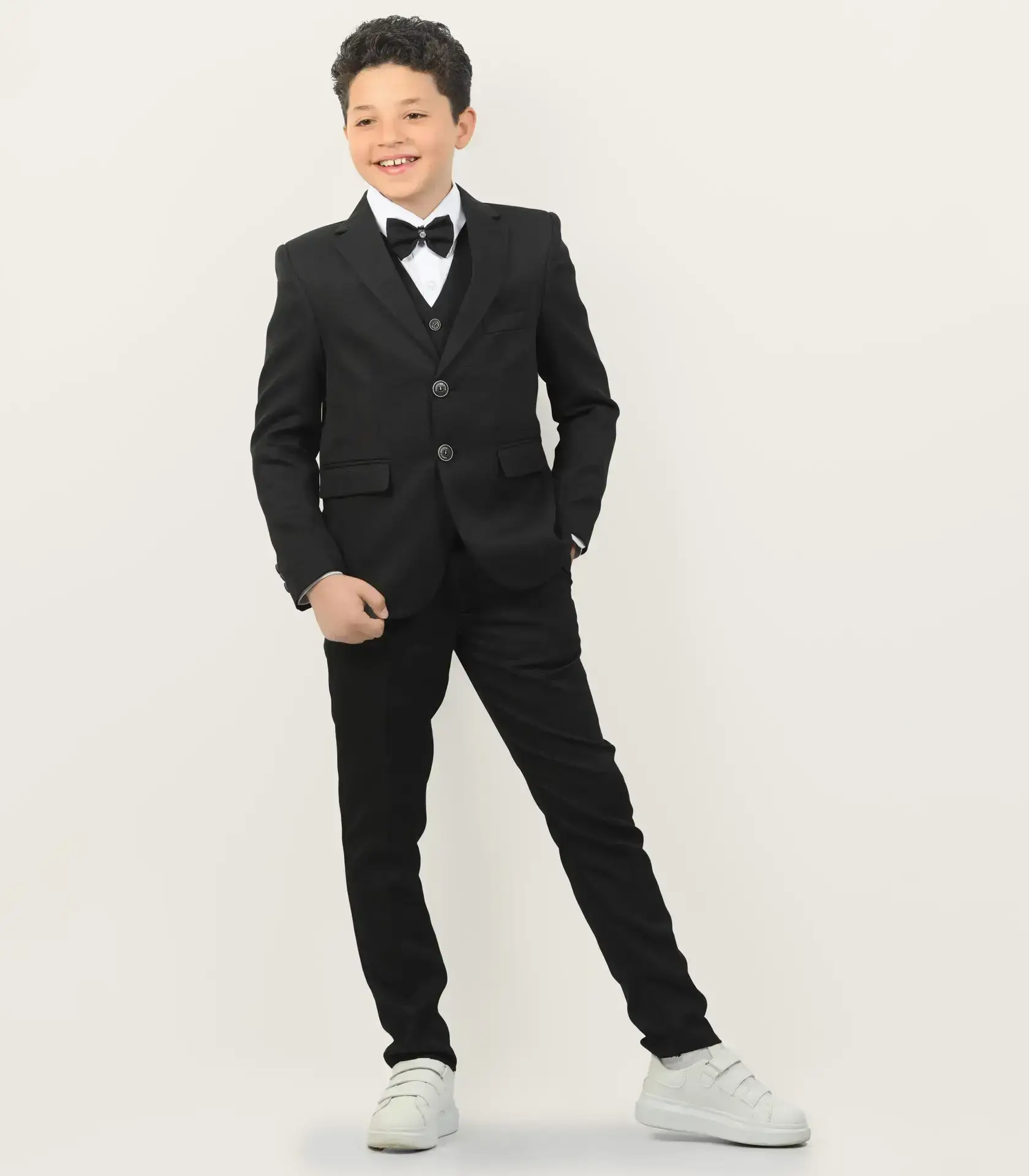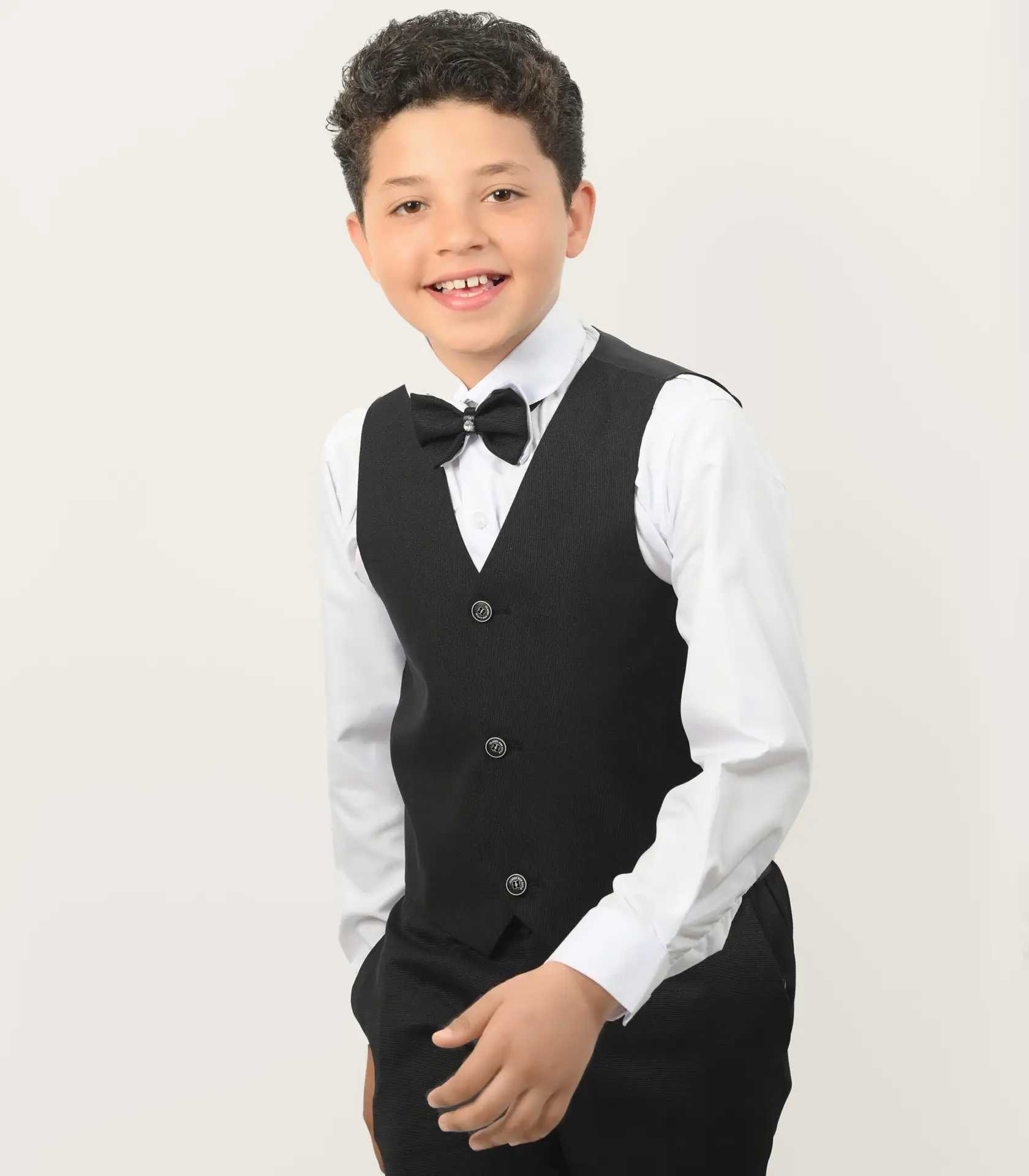 اختيار هذه القطعه الفريده لطفلك في المناسبات الرسمية يمنحه الثقة ويعزز شعوره بالتميز. شاركه في اختيار اللون أو نوع ربطة العنق ليتألق بأسلوبه الخاص.