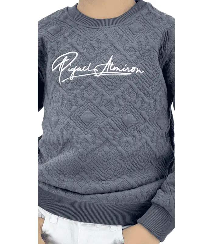 سويت شيرت أولادي روند مطبوع مبطن رصاصي
