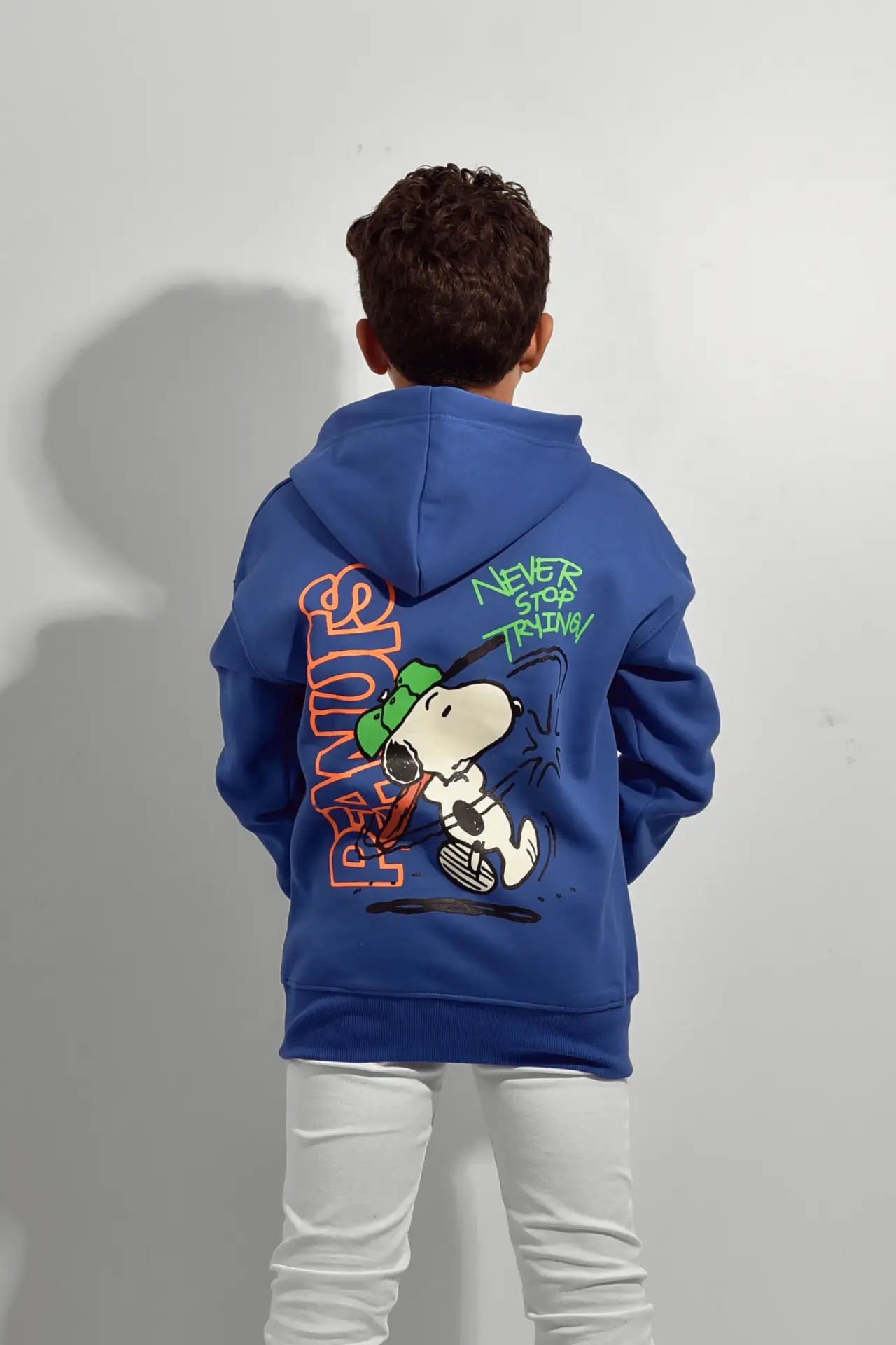 سويت شيرت أولادي كابيتشو مطبوع مبطن زهري