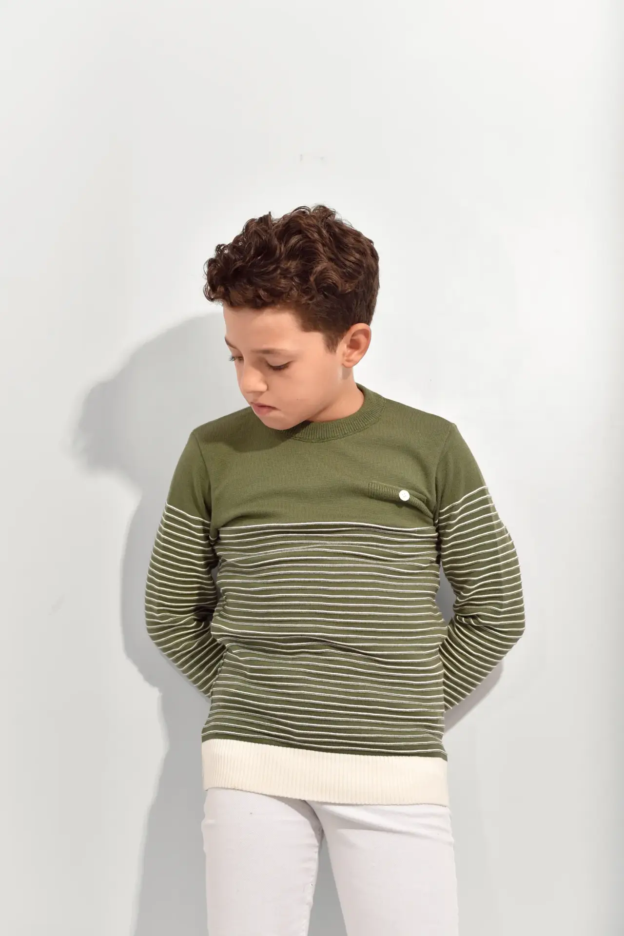 بلوفر تريكو أولادي مطبوع زيتي