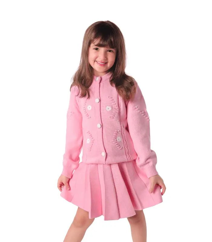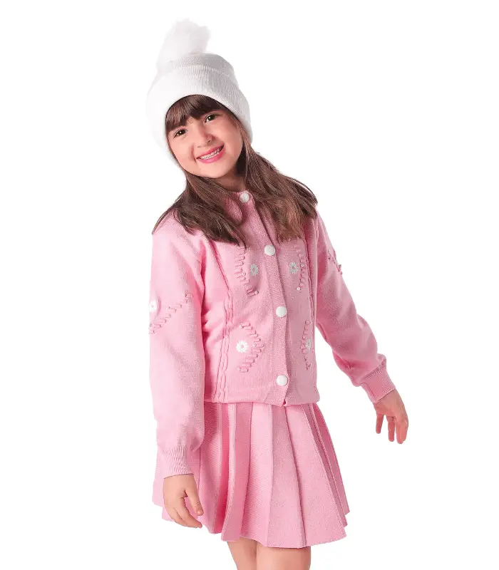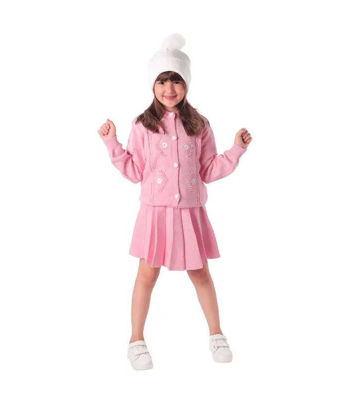 طقم بناتي بلوفر صوف مع جيبة – مريح وأنيق لأيام الشتاء الباردة
