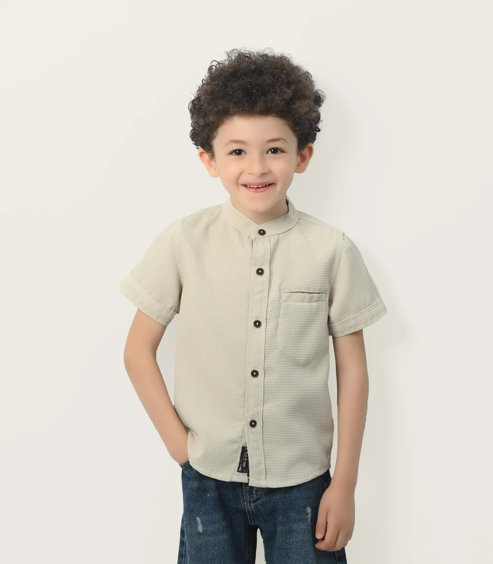 قميص أولادي أنيق وعصري، مصنوع من خامة قطنية ناعمة بنسبة 100%، بتصميم يجمع بين العملية والموضة.