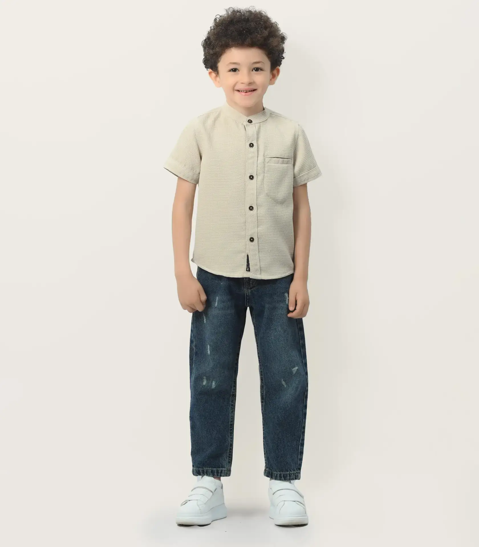 يأتي القميص بقصة مريحة تُناسب حركات الطفل اليومية، مع أزرار أمامية وياقة كلاسيكية. متوفر بألوان جذابة ونقشات مختلفة، ويمكن ارتداؤه في المناسبات أو الخروجات اليومية. متوفر بمقاسات من عمر 3 سنوات حتى 14 سنة.