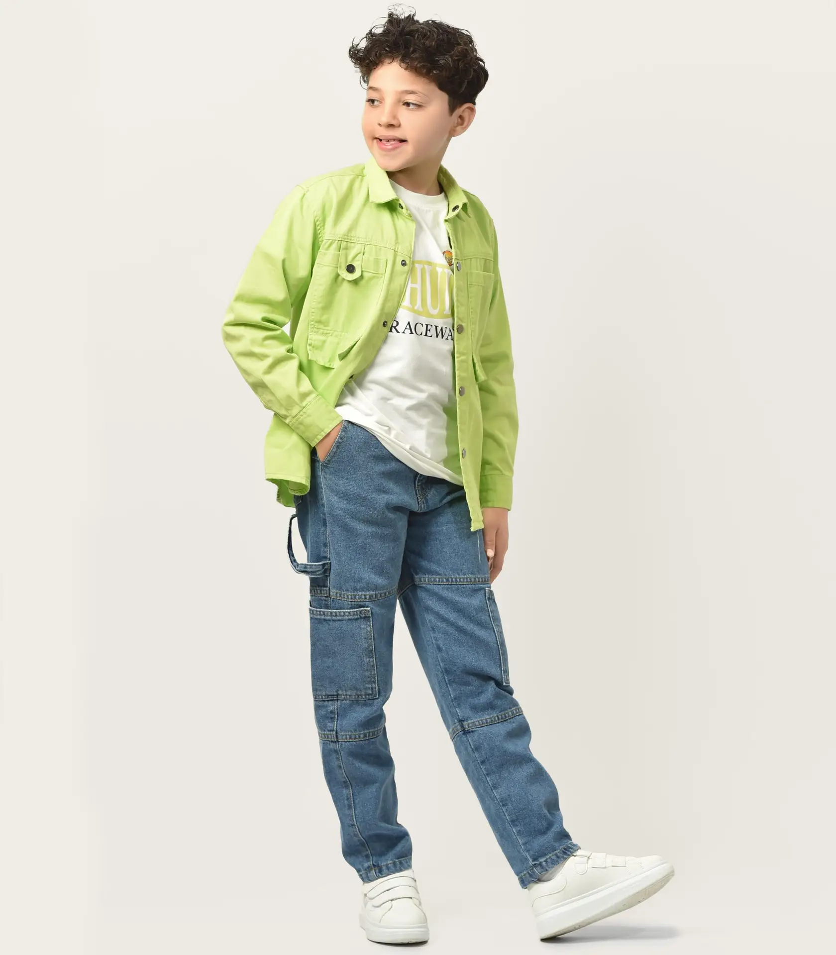 اختاري المقاس الذي يتناسب مع حجم طفلكِ الحالي ليتمكن من الاستمتاع بالراحة التامة دون الشعور بالضيق. الجاكيت الجبردين يضمن طفلكِ الحماية والدفء في أوقات الحاجة، بينما يمنح التيشيرت المطبوع مزيدًا من التنقل السهل.