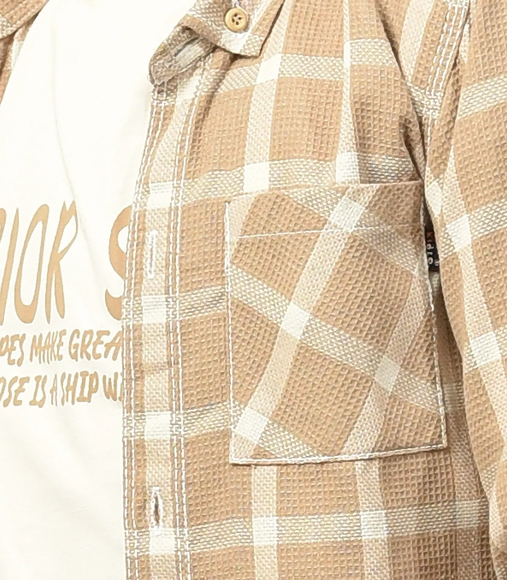 توينز أولادي قميص كم كاروه و تيشرت نصف كم مطبوع بيج