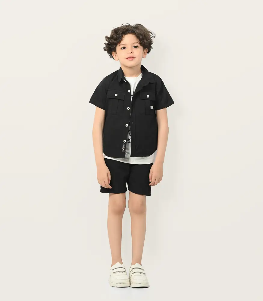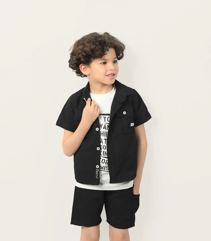طقم أولادي 3 قطع (قميص + تيشيرت + شورت)