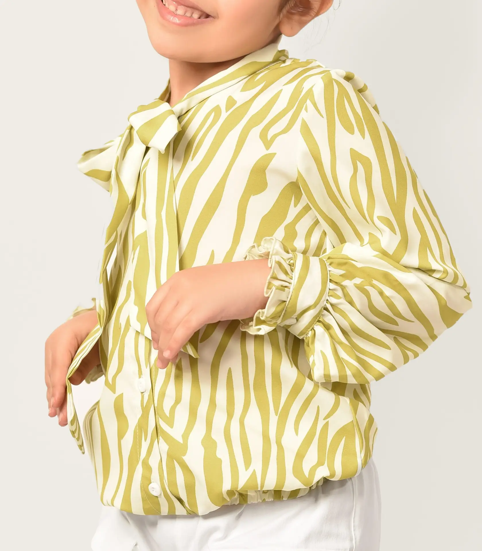 تم تصميم هذه القطعة لتكون مرنة وتناسب جميع الأوقات والمناسبات. مع قصة الكم الأنيقة، تمنح طفلتكِ حرية الحركة دون أي قيود، مما يتيح لها الاستمتاع بيومها بكل راحة. يمكن تنسيقها بسهولة مع الجينز أو التنورة أو السراويل القصيرة، لتضفي على إطلالتها لمسة مميزة وأنيقة.