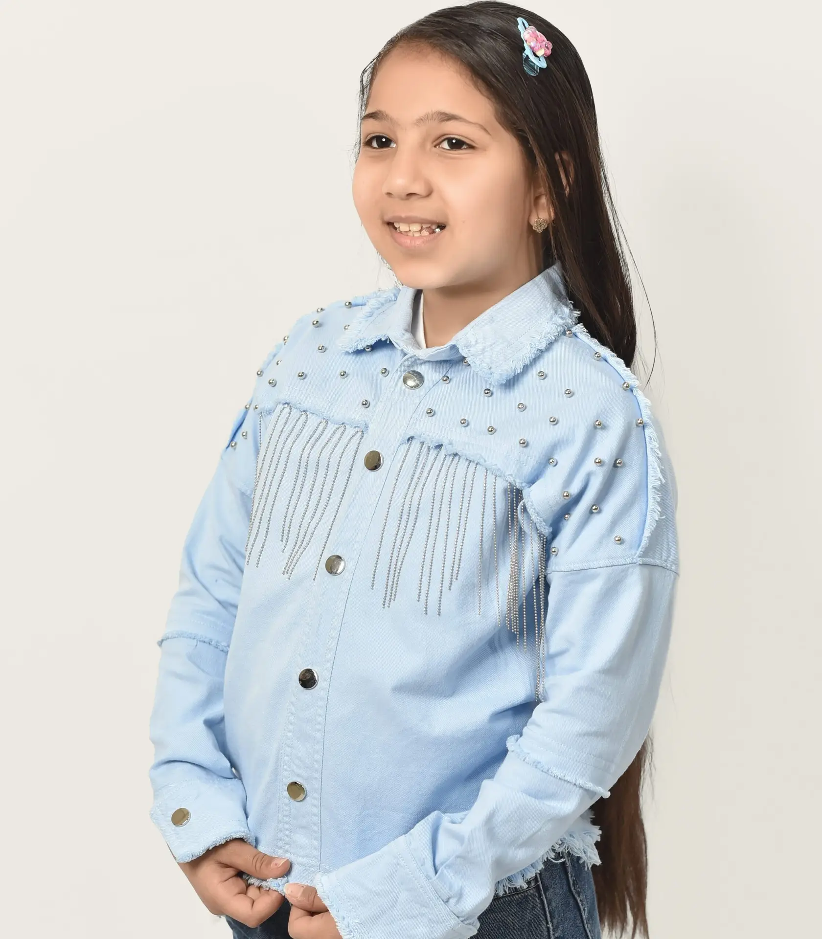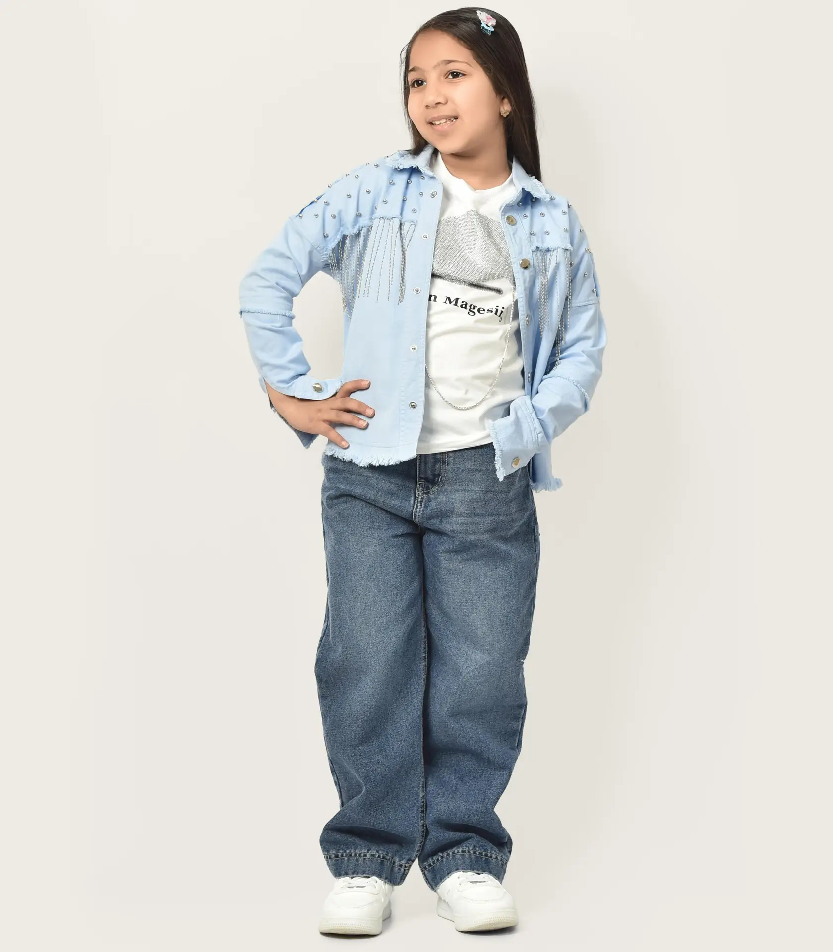 سواء كانت طفلتكِ في نزهة عائلية أو في مشوار مع أصدقائها، يضفي هذا الطقم لمسة من الأناقة العصرية على إطلالتها. الجاكيت الجبردين الاسترس مع تفاصيله المميزة يناسب جميع الأوقات والمناسبات، بينما يوفر التيشرت نصف الكم راحة إضافية وأناقة تناسب فصل الصيف والأيام المعتدلة.