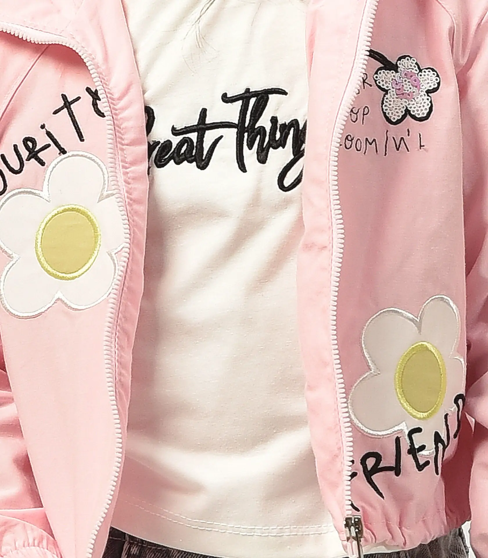 توينز بناتي جاكيت ميلتون مطبوع و تيشرت نصف كم مطبوع