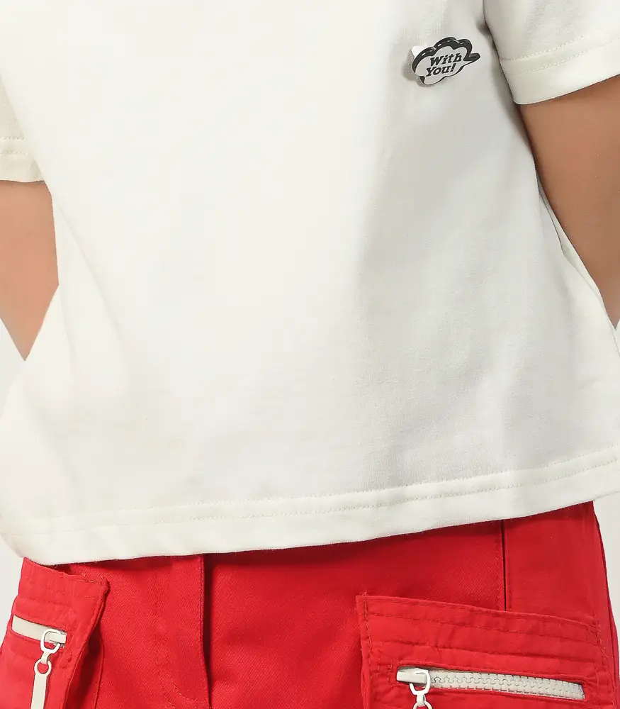 طقم بناتي تيشرت مطبوع وجيب