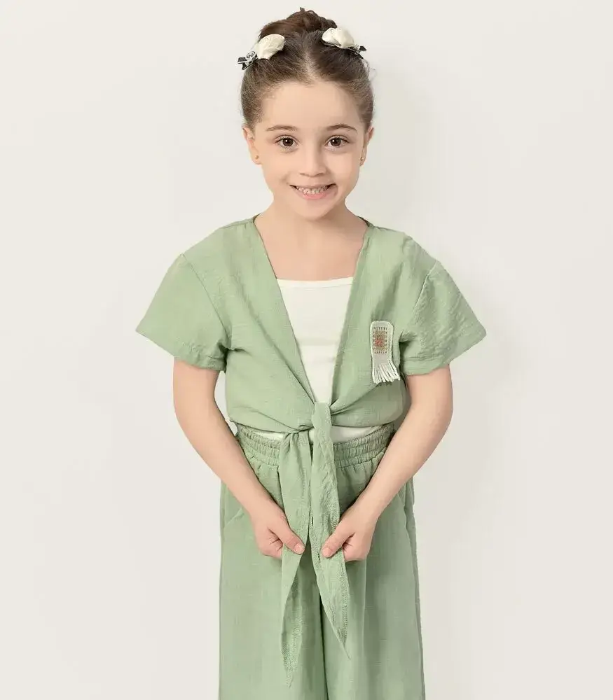 سالوبيت بناتي بنطلون بتصميم عصري وخامة مريحة، مثالي للإطلالات اليومية والخروجات، يجمع بين الأناقة والعملية لطفلتكِ.