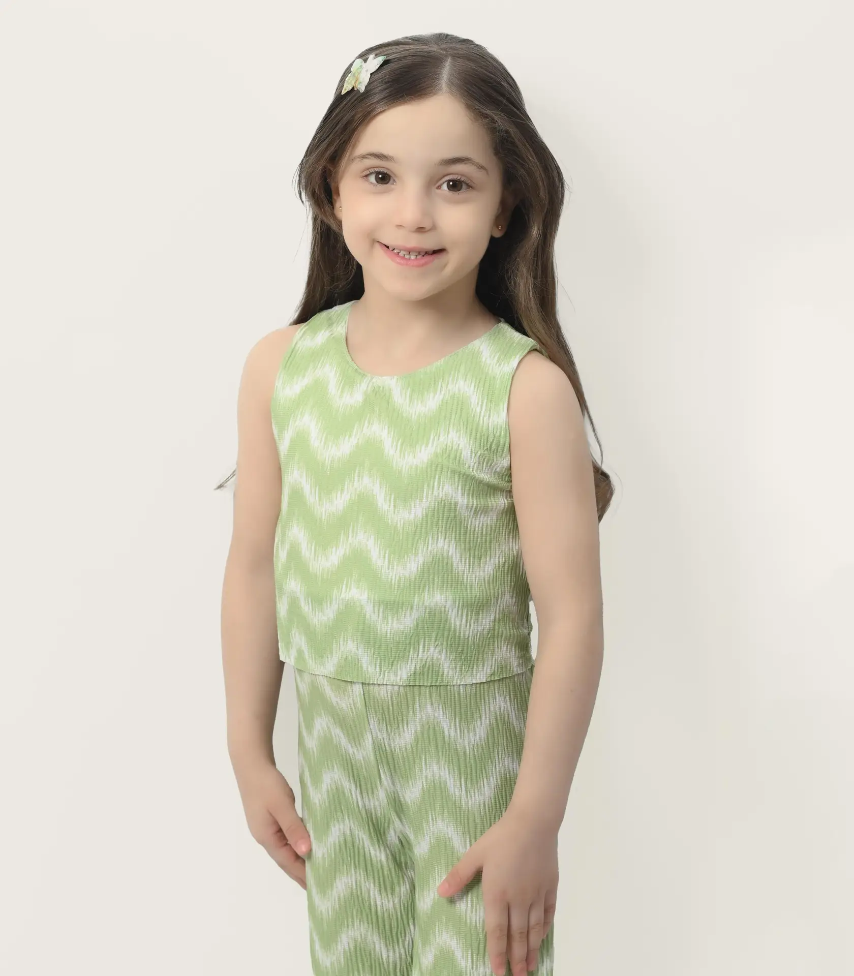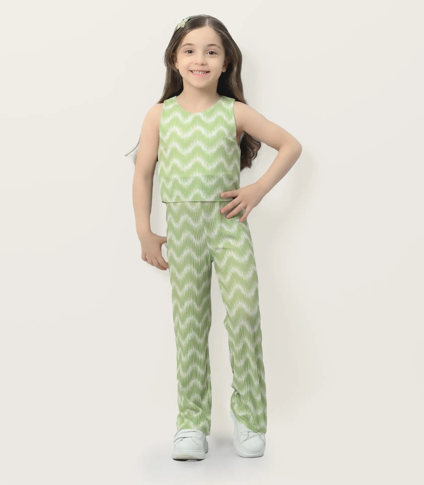 سالوبيت بناتي بنطلون بتصميم عصري وخامة مريحة، مثالي للإطلالات اليومية والخروجات، يجمع بين الأناقة والعملية لطفلتكِ.