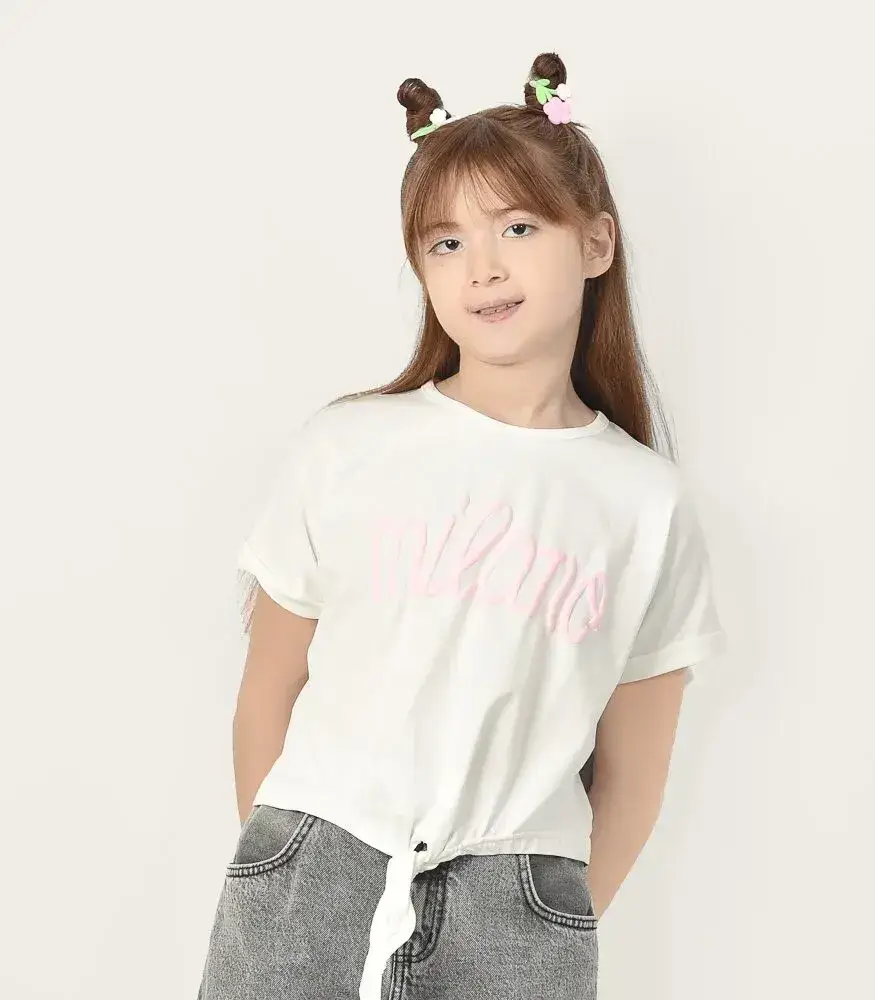تيشرت بناتي عصري بخامة قطنية ناعمة وتصميم جذاب يناسب الخروج والأنشطة اليومية. متوفر بألوان متنوعة ومقاسات متعددة تناسب جميع الأعمار.